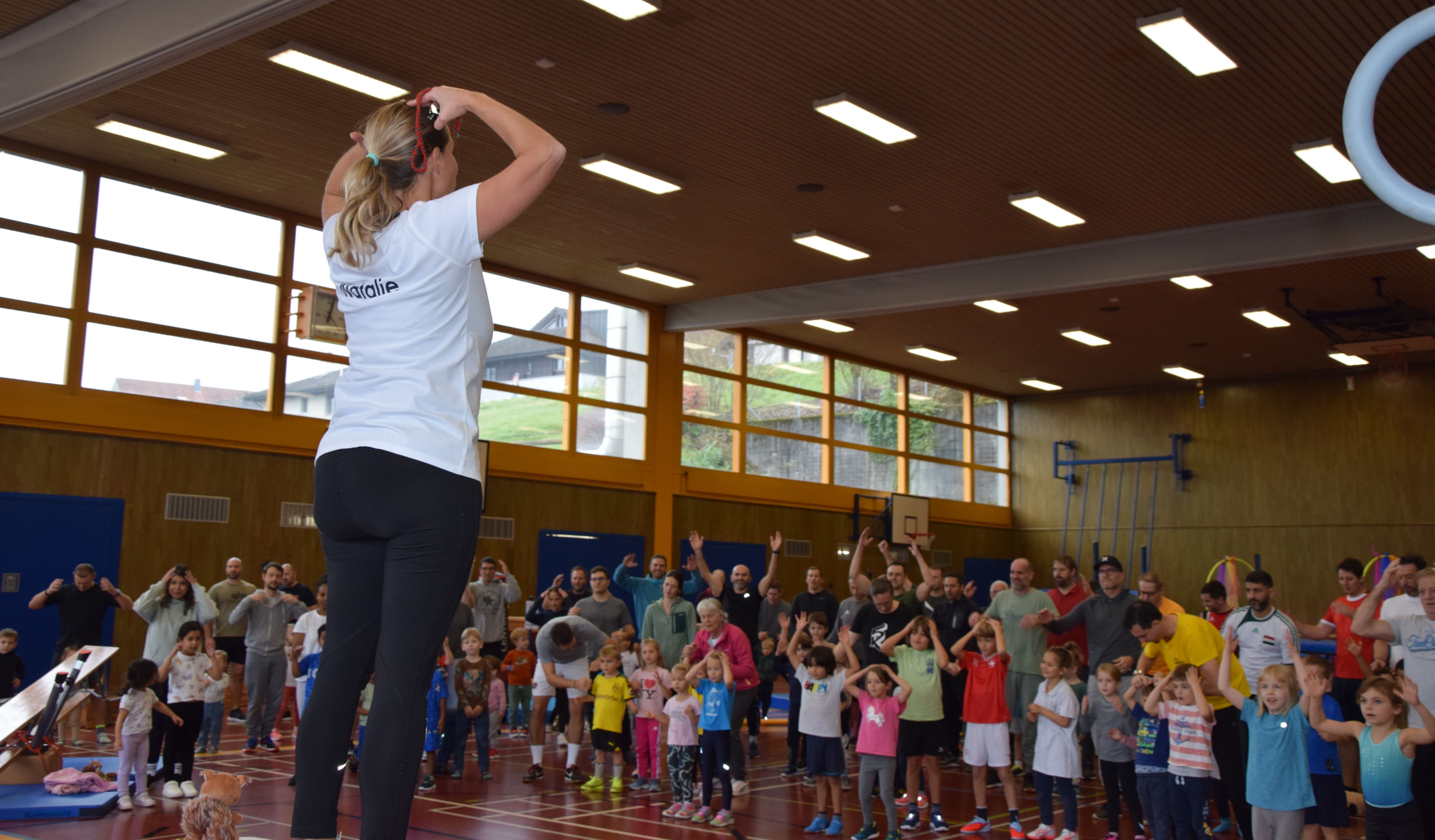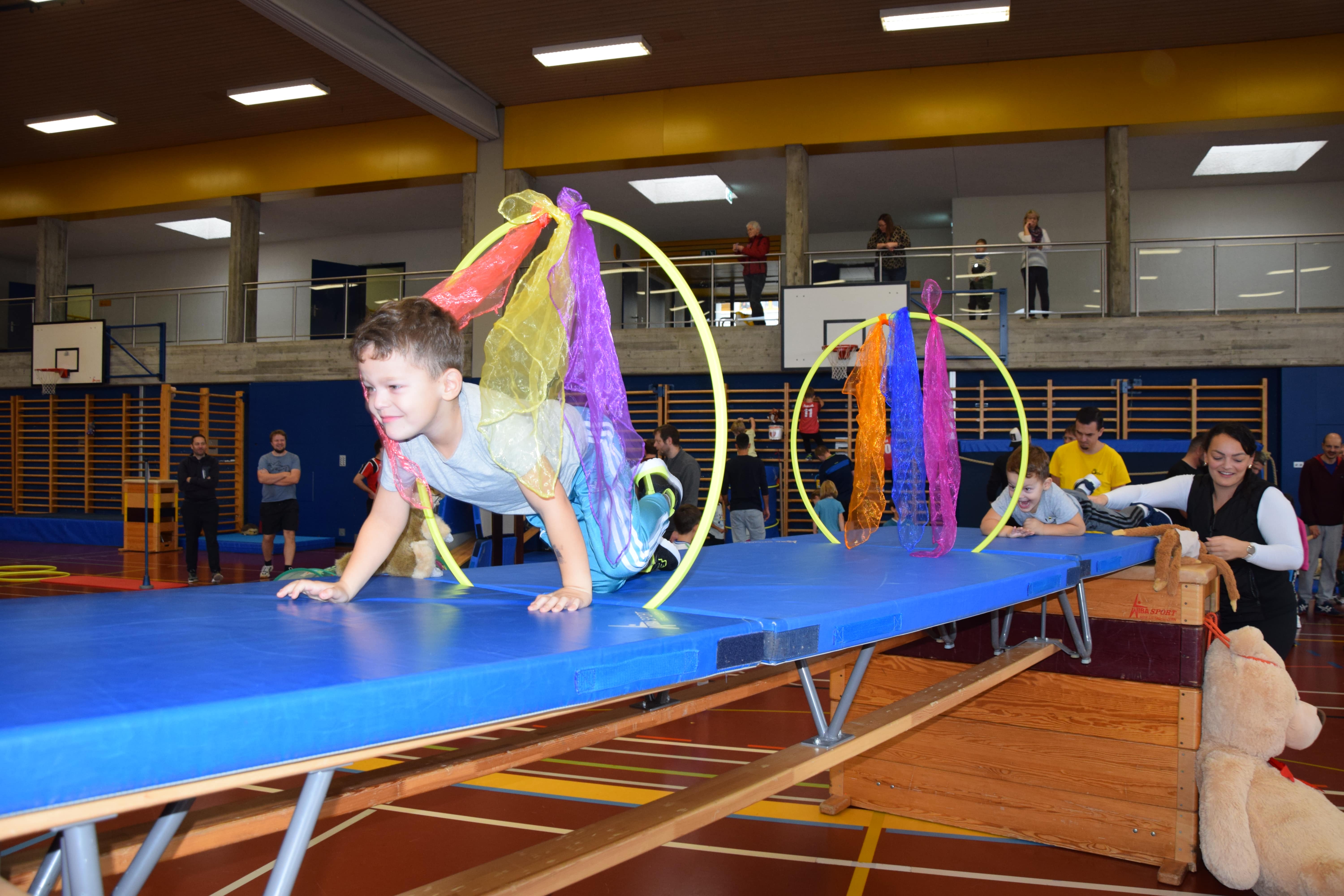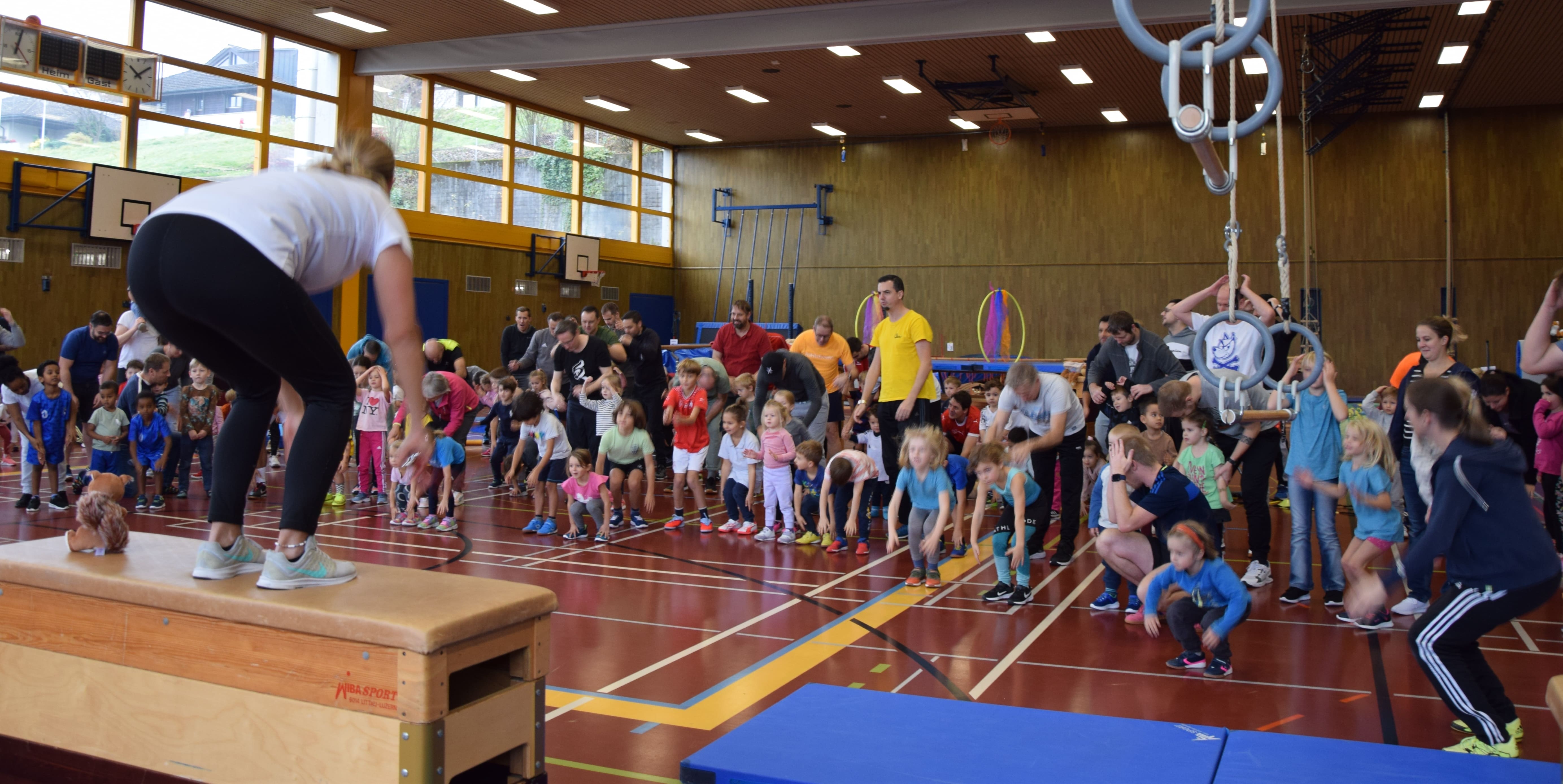 Einmal mehr hatte das KITU -und MUKI-Team mit Claudia Enz (KITU-Hauptleiterin) und Marcela Bucher (MUKI-Hauptleiterin) sowie ihren Helferinnen Nicole Holzmann und Natalie Cazzillo tolle Stationen zum Thema „Herbst“ aufgestellt. Nach den Begrüßungsworten von Claudia Enz und der FTV-Präsidentin Ursula Hunkeler sowie dem gemeinsamen Einturnen mit den Vätern waren die Kinder nicht mehr zu halten. Schnell verteilten sich alle an die einzelnen Posten. Jede hatte ihre Tücken: Kraft beim Klettern, Mut bei der Gletscherspalte, Treffsicherheit beim Unihockeyspiel und vieles mehr. Hit war der Boxsack mitten in der Turnhalle auf den die Kinder mit den Boxhandschuhen und mit vollen Kräften reinschlagen konnten. Aufgestaute Energie ade! Ein leicht gestresster Vater meinte neben der Station: „Mein Sohn hat so viel Energie, dies tut ihm gut“. Beliebt waren auch die Rutschbahn, der Kletterpark und das Tauschwingen von Step zu Step, das Fechten mit den Poolnudeln sowie die Langbank-Schaukel.