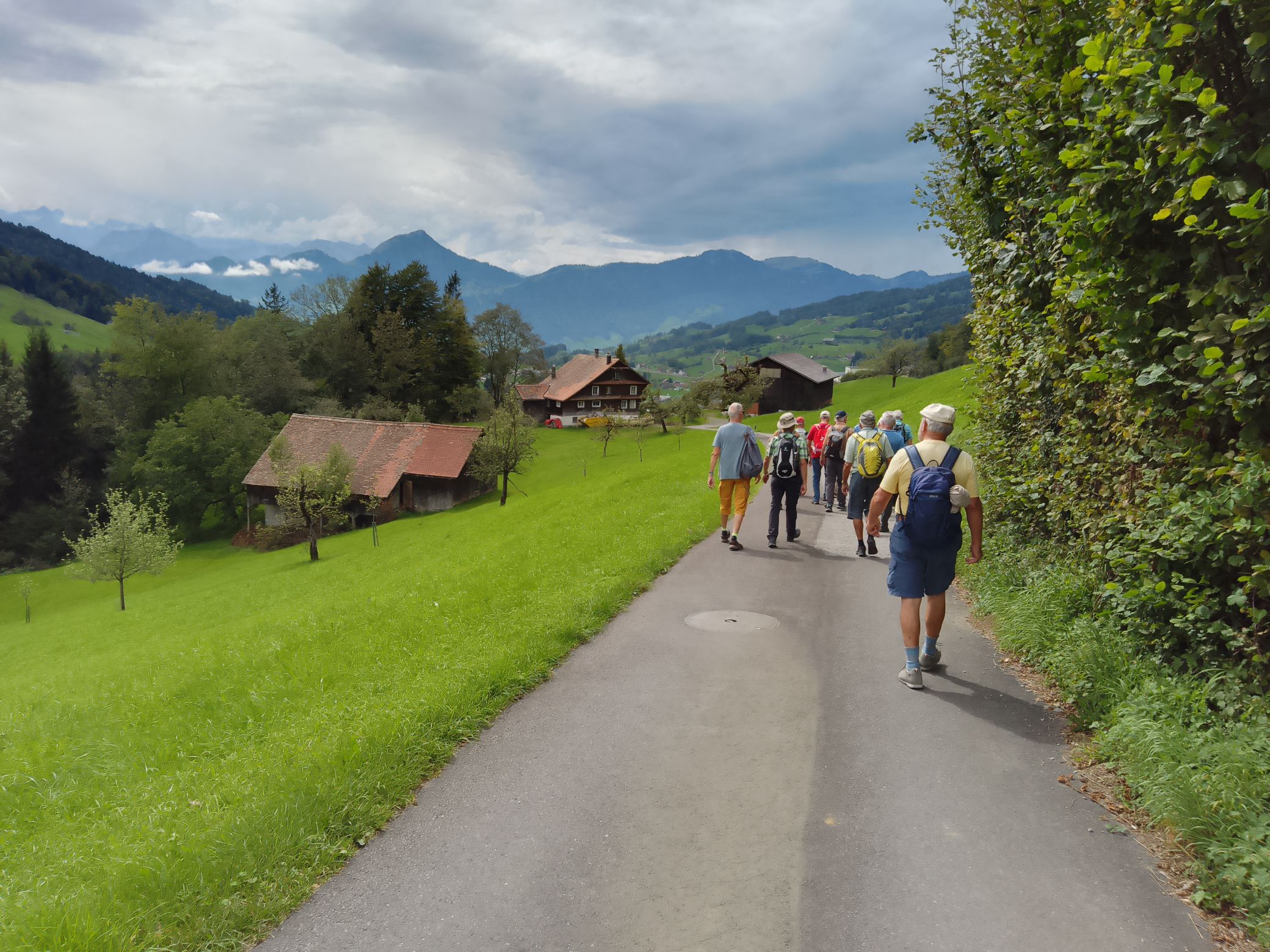 Die Wetteraussichten für diesen Tag waren nicht schlecht, musste doch erst am späteren Nachmittag mit Regen gerechnet werden. Am Bahnhof Luzern hatte der Wanderleiter Ruedi Thali die gutgelaunte 18-köpfige Wandergruppe beisammen. Diese fuhr um 08.39 Uhr mit dem Voralpen Express Richtung Arth-Goldau. Nach knapp einer Stunde gemütlicher Fahrt erreichte der Zug Rothenthurm, wo wir zu unserer Wanderung starteten. Nach einem kurzen Marsch kamen wir am roten Turm vorbei zum Restaurant Turm, wo wir uns wie üblich mit Kaffee und Gipfeli stärkten. Danach bestiegen wir den Bus, der uns zur äusseren Altmatt brachte. Bei recht freundlichem Wetter durchwanderten wir die einzigartige Moorlandschaft. Mehrere Informationstafeln weisen darauf hin, was es in diesem Schutzgebiet alles zu sehen gibt. Und wie sich bald zeigte waren wir nicht die Einzigen, die auf diesen Pfaden unterwegs waren. Eher zufällig begegneten wir einer Gruppe von Ornithologen, die damit beschäftigt war, junge Vögel zu beringen und darüber Buch zu führen. Die kleinen Vögelchen werden in Netzen gefangen, beringt und danach wieder freigelassen, wie wir am Beispiel einer Rauchschwalbe mitverfolgen konnten. Danach wanderten wir gemütlich nach Rothenthurm zurück, wo wir mittags zum zweiten Mal im Restaurant Turm einkehrten. Das Tagesmenu hatte Ruedi vorbestellt. Es gab eine reichliche Portion Rahmschnitzel mit Nudeln und Gemüse und zum Abschluss ein feines Dessert. Gut gestärkt nahmen wir die zweite Etappe unter die Füsse. Der Weg führte entlang des Dorfes auf die sogenannte Alte Strasse, die aktuell vor allem von Velofahrern und Wanderern benutzt wird. Für erstere ist besonders die Talfahrt hinunter nach Sattel und danach ins Aegerital ein wahrer Genuss. Wir als Fussgänger benötigten für den Abstieg nach Sattel etwas mehr Zeit, damit wir dessen Auswirkungen nicht am nächsten Tag in den Knien spürten. Am Ziel angelangt, genossen wir das kühle Blonde auf der Wirtschaftsterrasse. Auf dem Weg zur Bahnstation erreichten uns dann die ersten Regentropfen, und später auf der Fahrt entlang des Zugersees konnten wir noch einen prächtigen Regenbogen bestaunen. Dank Wetterglück hatten wir eine schöne und abwechslungsreiche Wanderung, für die ich mich im Namen aller Teilnehmer bei Ruedi nochmals bedanken möchte.