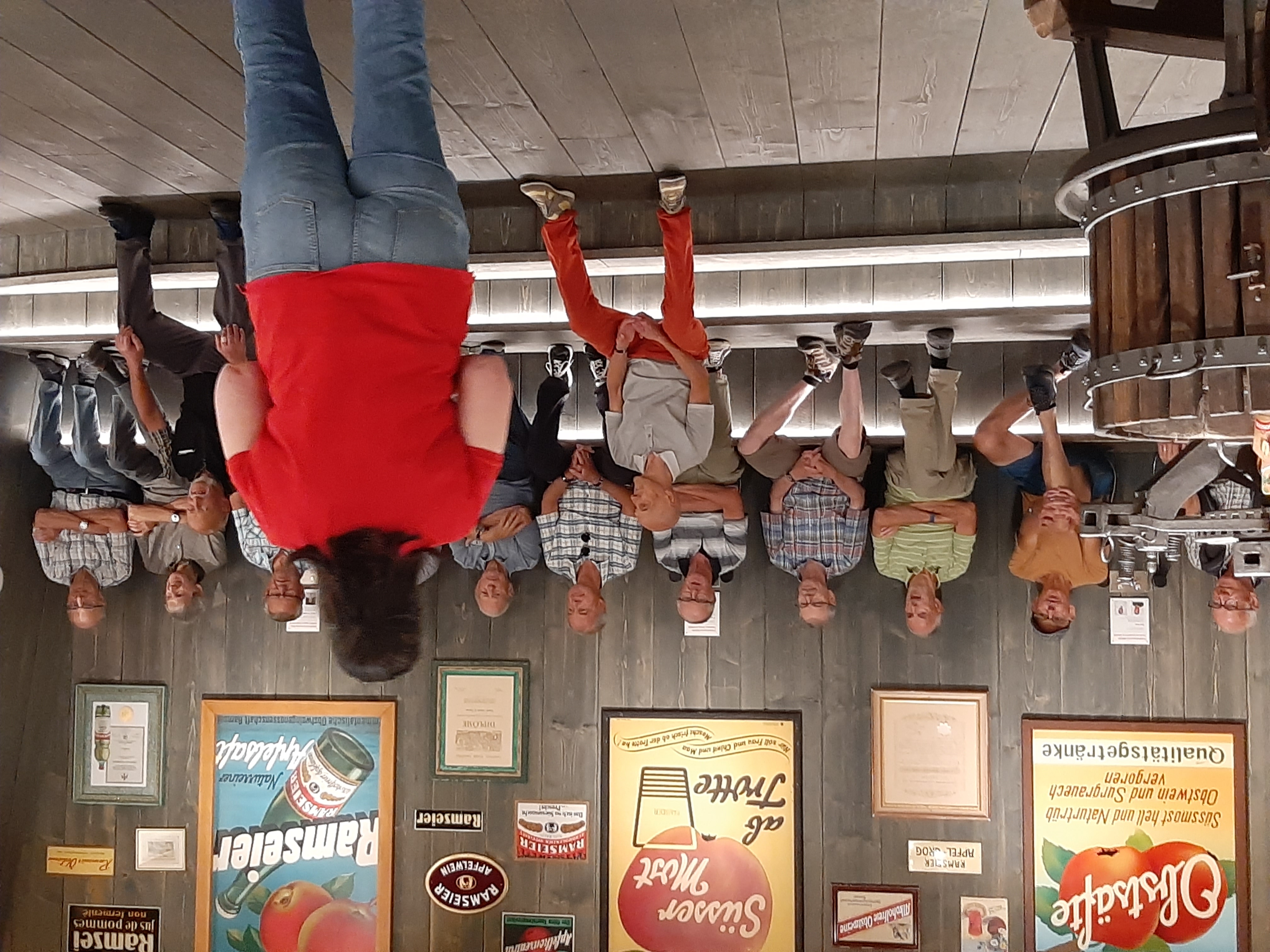 Mit Zemp-Car fuhren wir zur Firma Ramseier um viel Wissenswertes über die Obstverwertung und den Mostbetrieb zu erfahren. Zuerst konnten wir uns bei Kaffee und Gipfeli auf den Besuch bei Ramseier einstimmen. In der RAMSEIER Erlebniswelt wurden wir von zwei netten Damen begrüsst, die uns in zwei Gruppen durch die Ausstellung führten und anhand von Kurzfilmen und Infotafeln die Verwertung des Obstes und die Herstellung von Most erklärten. Beim Degustieren der verschiedenen Mostvarianten konnten wir altbekannte Säfte und neue Entwicklungen mit Tee-Anteilen kosten.