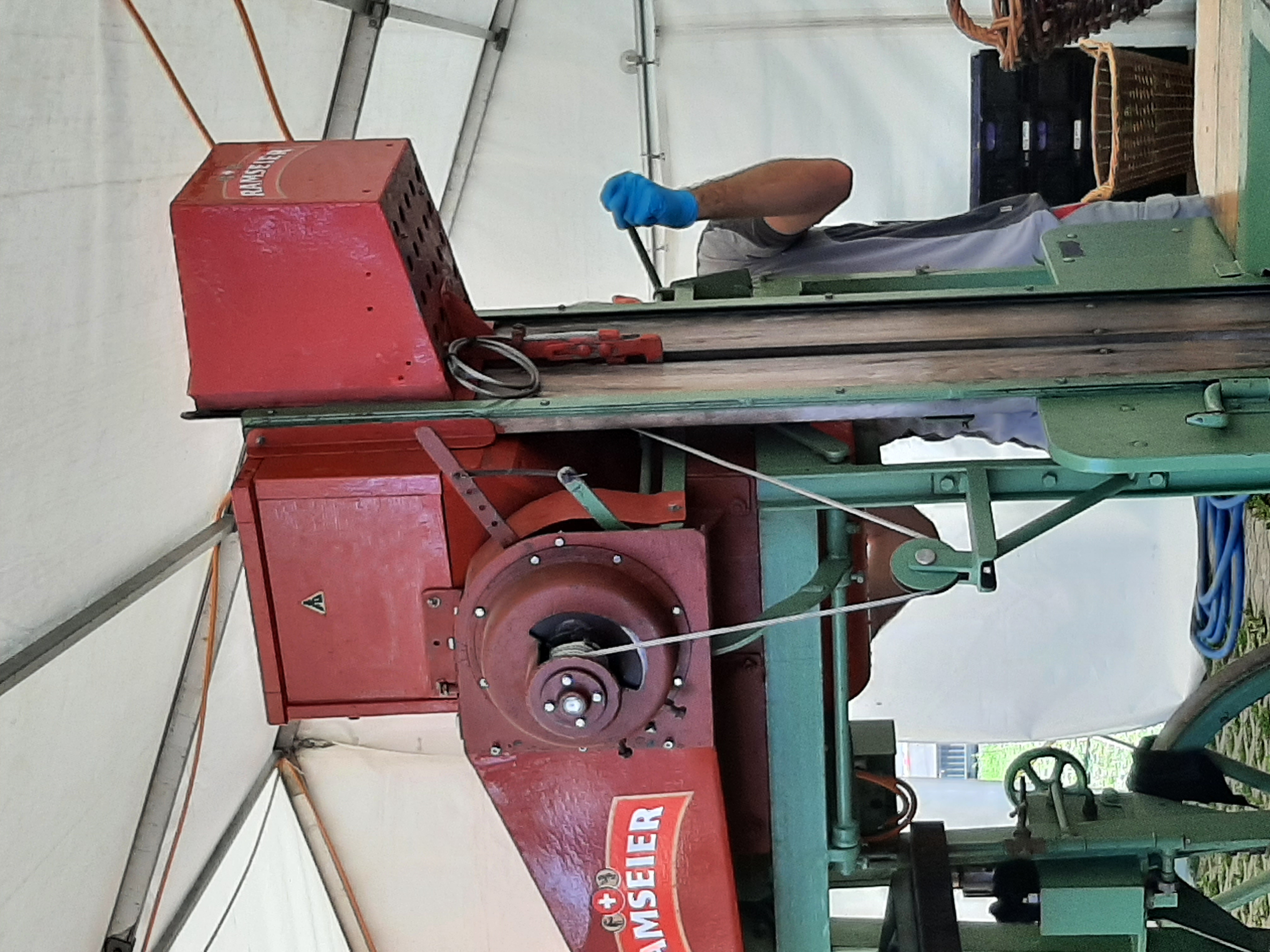 Anschliessend wurde uns auf einer 85-jährigen, fahrbaren Moschti die Herstellung von Most vorgeführt, so wie wir es selbst als Knaben in der Dorfmosti erlebt hatten. Eine Kostprobe des frischgepressten Saftes, ungefiltert und unbehandelt, durften wir mitnehmen.