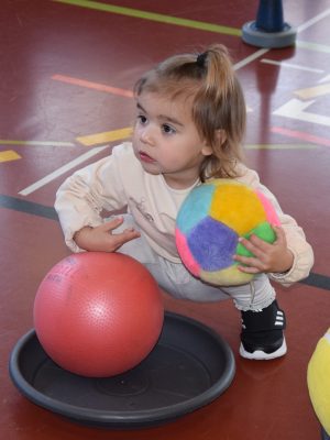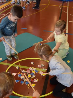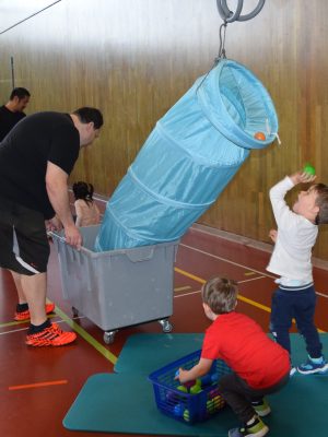 Nach dem gemeinsamen Aufwärmen zum Song „Der Körperteile-Blues“ und dem Vorstellen einiger anspruchsvoller Posten, haben die Leiterinnen endlich den Startschuss zur VAKI-Olympiade gegeben.