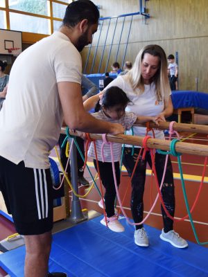 Nicht nur die Kinder turnten eifrig mit, auch die Väter waren gefordert. Bei schwierigen Hindernissen halfen sie mit und gaben Sicherheit. Überhaupt genossen die Kids die volle Aufmerksamkeit der Väter. Die Teilnehmer waren begeistert und voll des Lobes über die großartigen Posten und die vielen guten Ideen der Organisatorinnen.