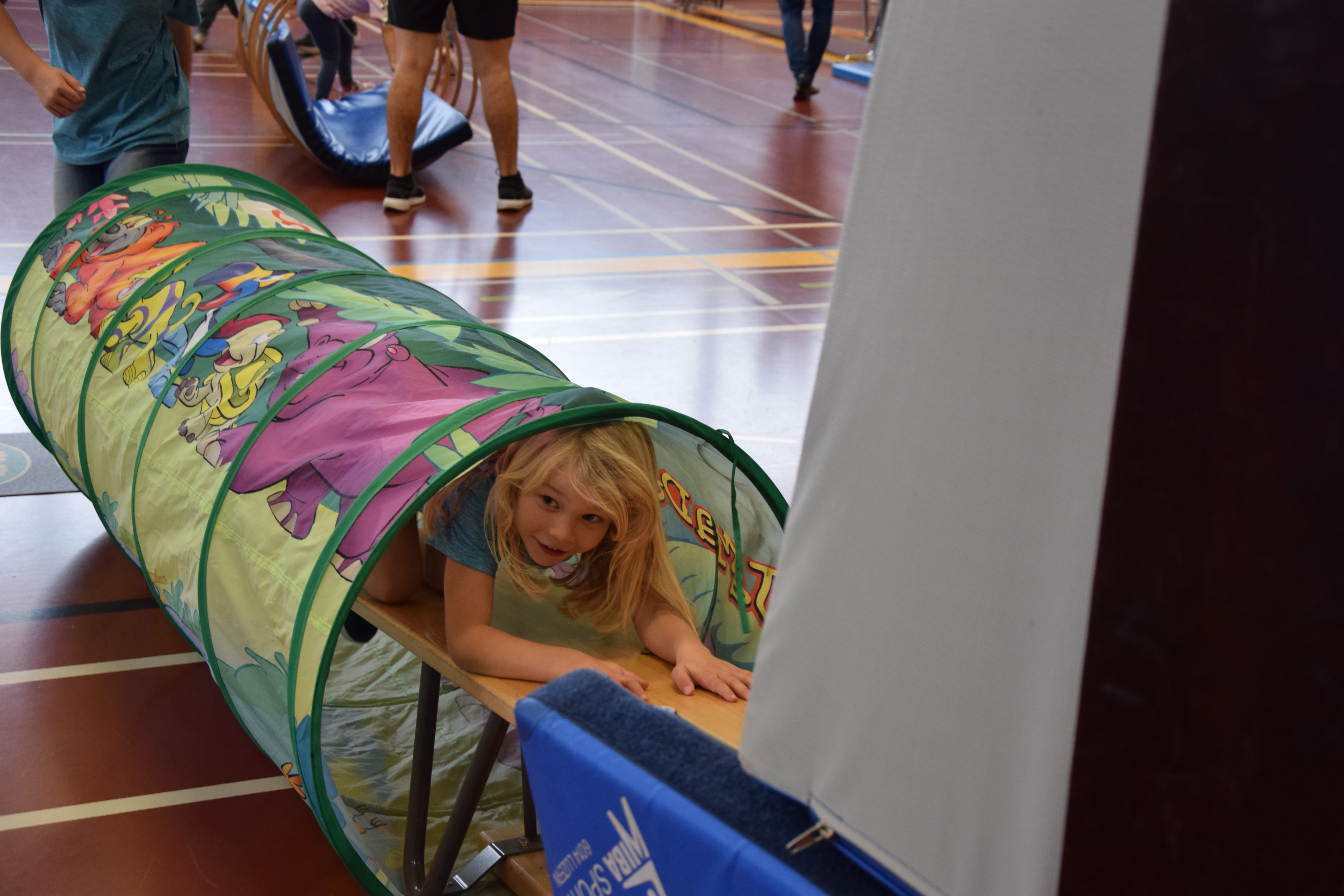 Das Leiterteam vom MUKI und KITU überrascht alle Teilnehmer mit einem tollen Geräteparcour in der Dreifach-Turnhalle.