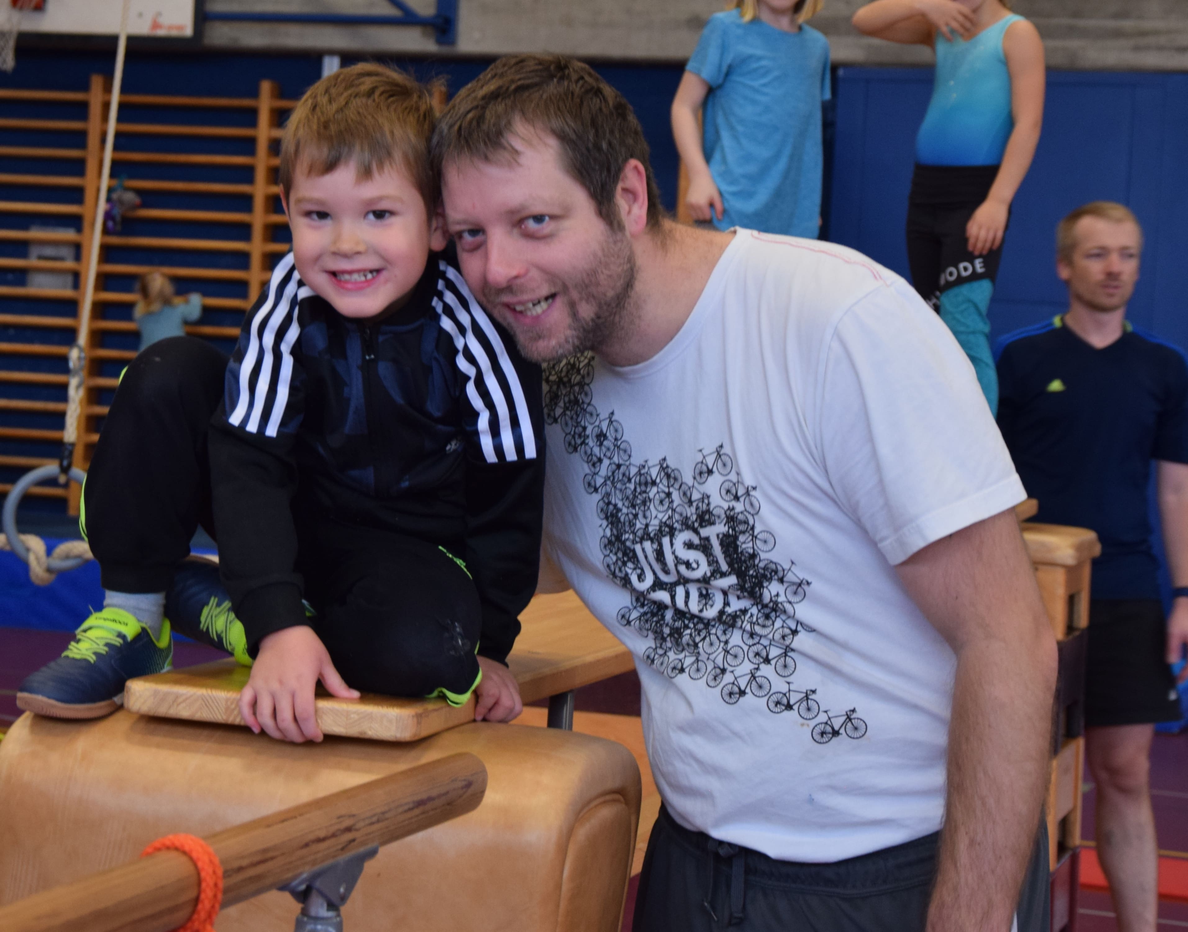Nicht nur die Kinder turnten eifrig, auch die Väter waren gefordert. Bei schwierigen Hindernissen halfen sie mit – gaben Sicherheit. Überhaupt genossen es die Kids, die volle Aufmerksamkeit des Vaters zu spüren. „Ich bin das letzte Mal hier“, meinte ein Vater, „von unseren drei Kindern ist er der letzte, mit dem ich ins Vaki-Turnen gehen kann. Er hat sich schon lange auf diesen Event gefreut“.