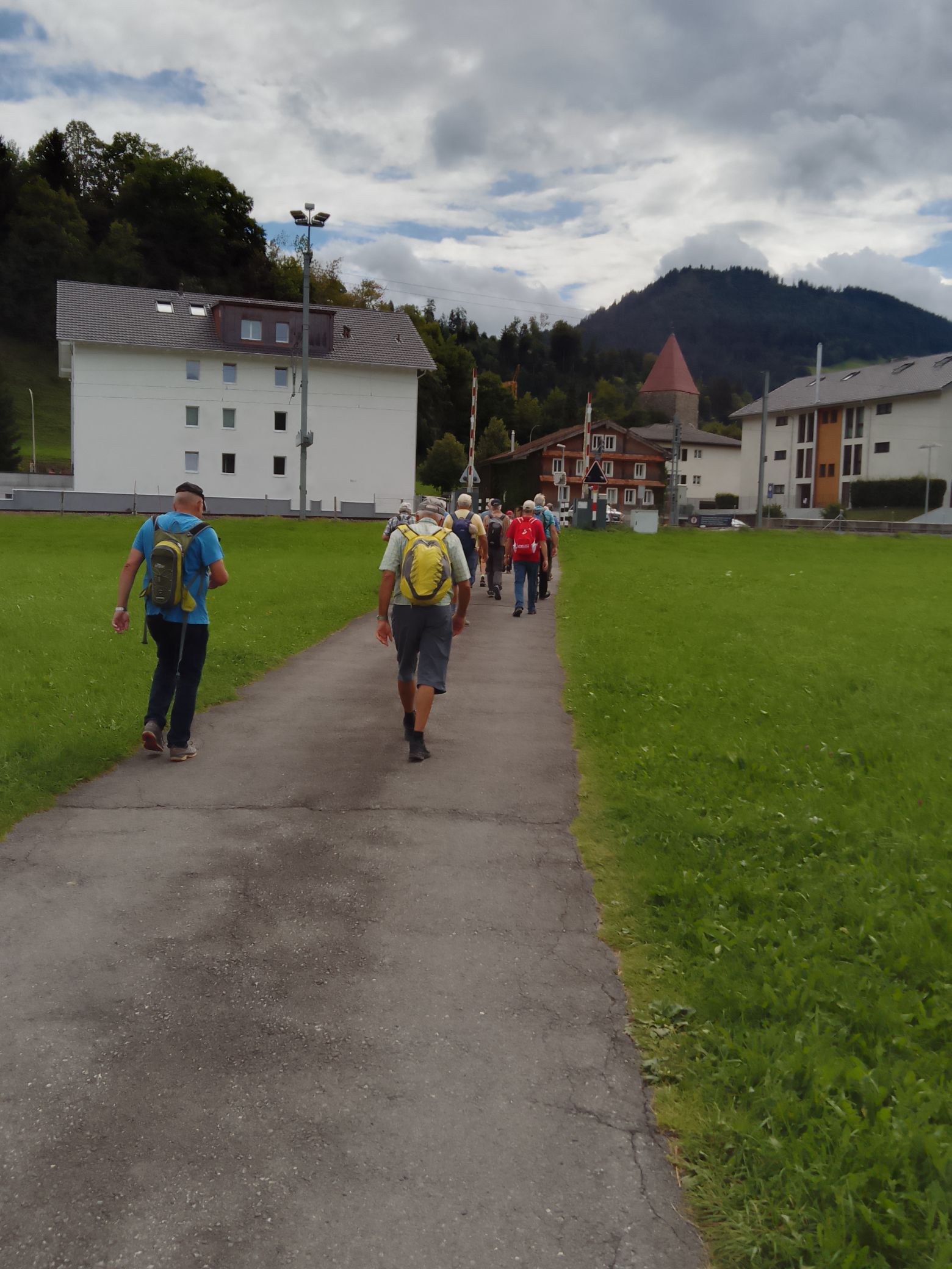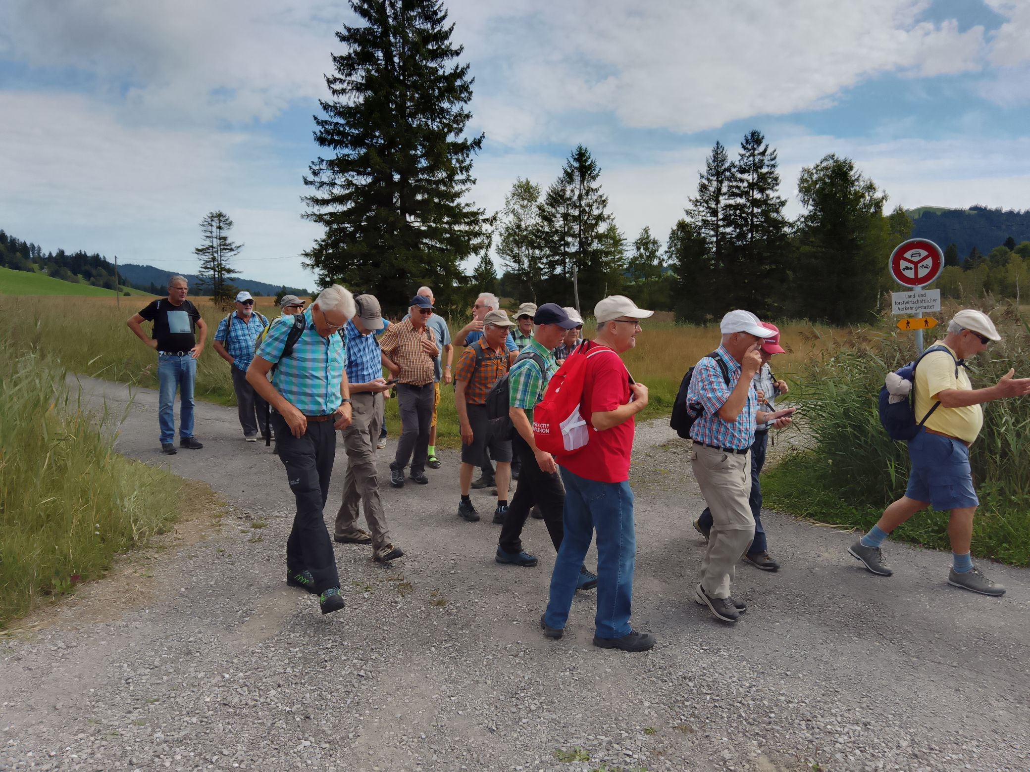 Die Wetteraussichten für diesen Tag waren nicht schlecht, musste doch erst am späteren Nachmittag mit Regen gerechnet werden. Am Bahnhof Luzern hatte der Wanderleiter Ruedi Thali die gutgelaunte 18-köpfige Wandergruppe beisammen. Diese fuhr um 08.39 Uhr mit dem Voralpen Express Richtung Arth-Goldau. Nach knapp einer Stunde gemütlicher Fahrt erreichte der Zug Rothenthurm, wo wir zu unserer Wanderung starteten. Nach einem kurzen Marsch kamen wir am roten Turm vorbei zum Restaurant Turm, wo wir uns wie üblich mit Kaffee und Gipfeli stärkten. Danach bestiegen wir den Bus, der uns zur äusseren Altmatt brachte. Bei recht freundlichem Wetter durchwanderten wir die einzigartige Moorlandschaft. Mehrere Informationstafeln weisen darauf hin, was es in diesem Schutzgebiet alles zu sehen gibt. Und wie sich bald zeigte waren wir nicht die Einzigen, die auf diesen Pfaden unterwegs waren. Eher zufällig begegneten wir einer Gruppe von Ornithologen, die damit beschäftigt war, junge Vögel zu beringen und darüber Buch zu führen. Die kleinen Vögelchen werden in Netzen gefangen, beringt und danach wieder freigelassen, wie wir am Beispiel einer Rauchschwalbe mitverfolgen konnten. Danach wanderten wir gemütlich nach Rothenthurm zurück, wo wir mittags zum zweiten Mal im Restaurant Turm einkehrten. Das Tagesmenu hatte Ruedi vorbestellt. Es gab eine reichliche Portion Rahmschnitzel mit Nudeln und Gemüse und zum Abschluss ein feines Dessert. Gut gestärkt nahmen wir die zweite Etappe unter die Füsse. Der Weg führte entlang des Dorfes auf die sogenannte Alte Strasse, die aktuell vor allem von Velofahrern und Wanderern benutzt wird. Für erstere ist besonders die Talfahrt hinunter nach Sattel und danach ins Aegerital ein wahrer Genuss. Wir als Fussgänger benötigten für den Abstieg nach Sattel etwas mehr Zeit, damit wir dessen Auswirkungen nicht am nächsten Tag in den Knien spürten. Am Ziel angelangt, genossen wir das kühle Blonde auf der Wirtschaftsterrasse. Auf dem Weg zur Bahnstation erreichten uns dann die ersten Regentropfen, und später auf der Fahrt entlang des Zugersees konnten wir noch einen prächtigen Regenbogen bestaunen. Dank Wetterglück hatten wir eine schöne und abwechslungsreiche Wanderung, für die ich mich im Namen aller Teilnehmer bei Ruedi nochmals bedanken möchte.