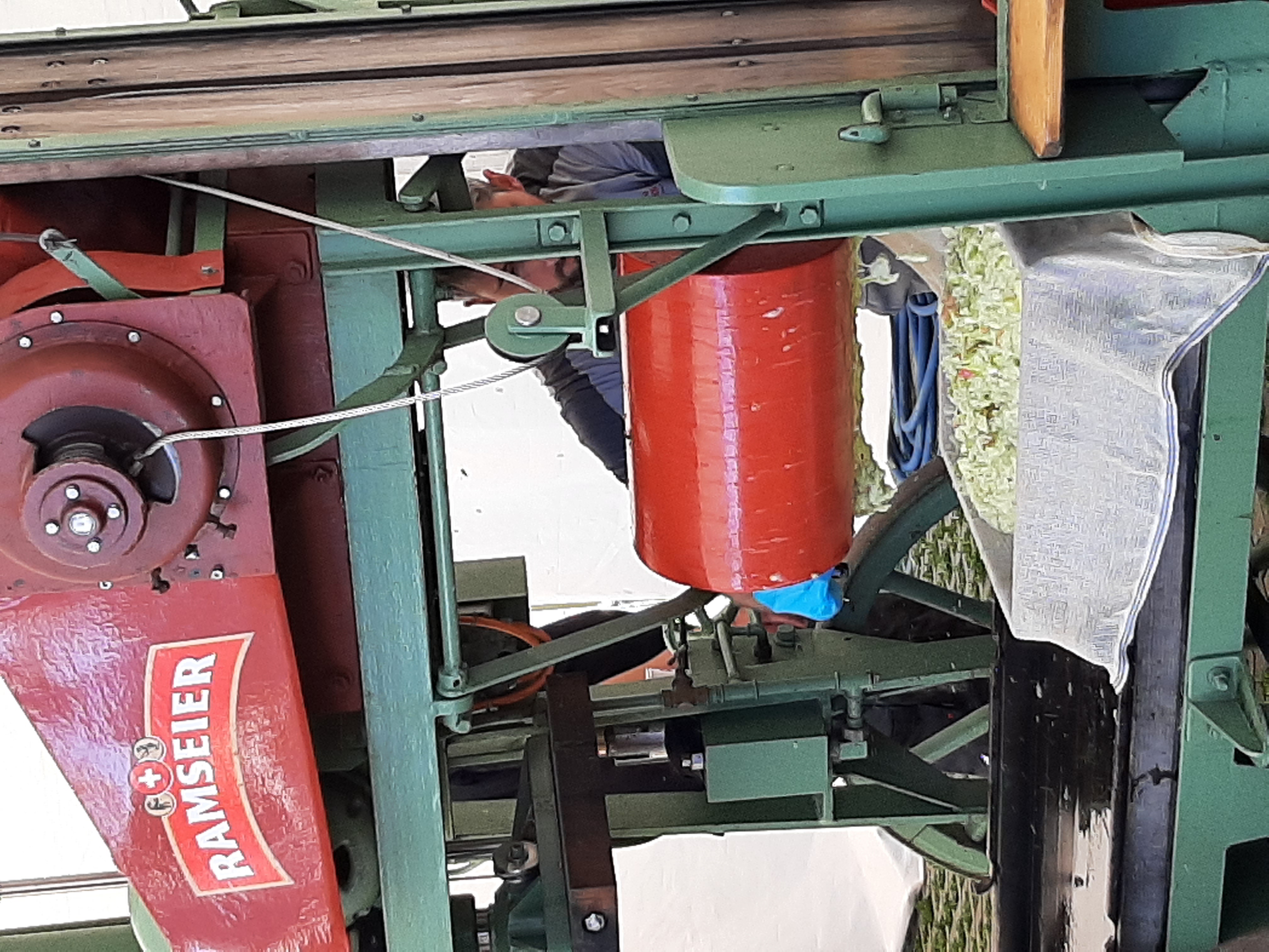 Anschliessend wurde uns auf einer 85-jährigen, fahrbaren Moschti die Herstellung von Most vorgeführt, so wie wir es selbst als Knaben in der Dorfmosti erlebt hatten. Eine Kostprobe des frischgepressten Saftes, ungefiltert und unbehandelt, durften wir mitnehmen.