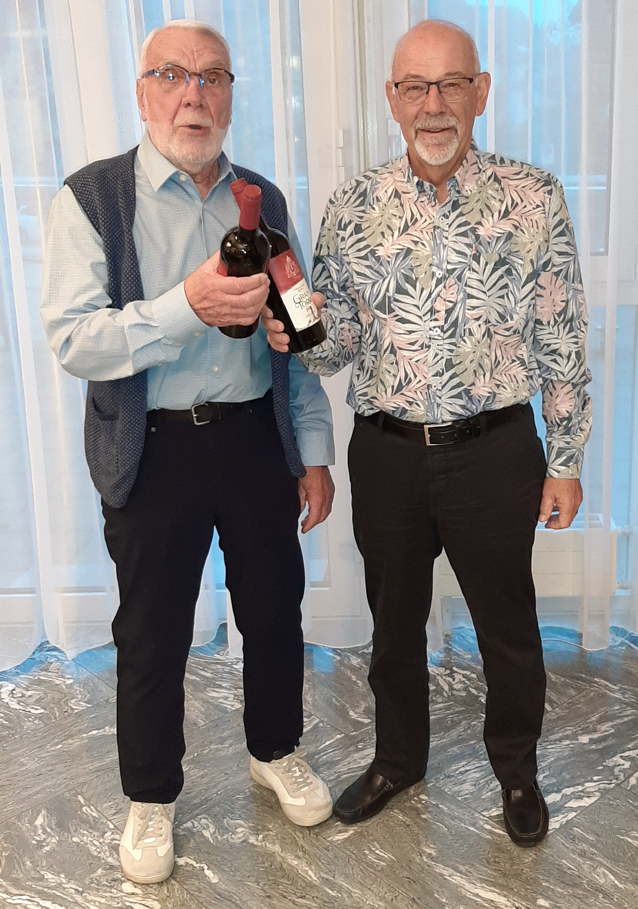 Beim Traktandum Ehrungen konnten als Dank alle Chargierten sowie 13 Geburtstagsjubilare eine Flasche aus der Kellerei Schuler entgegennehmen.